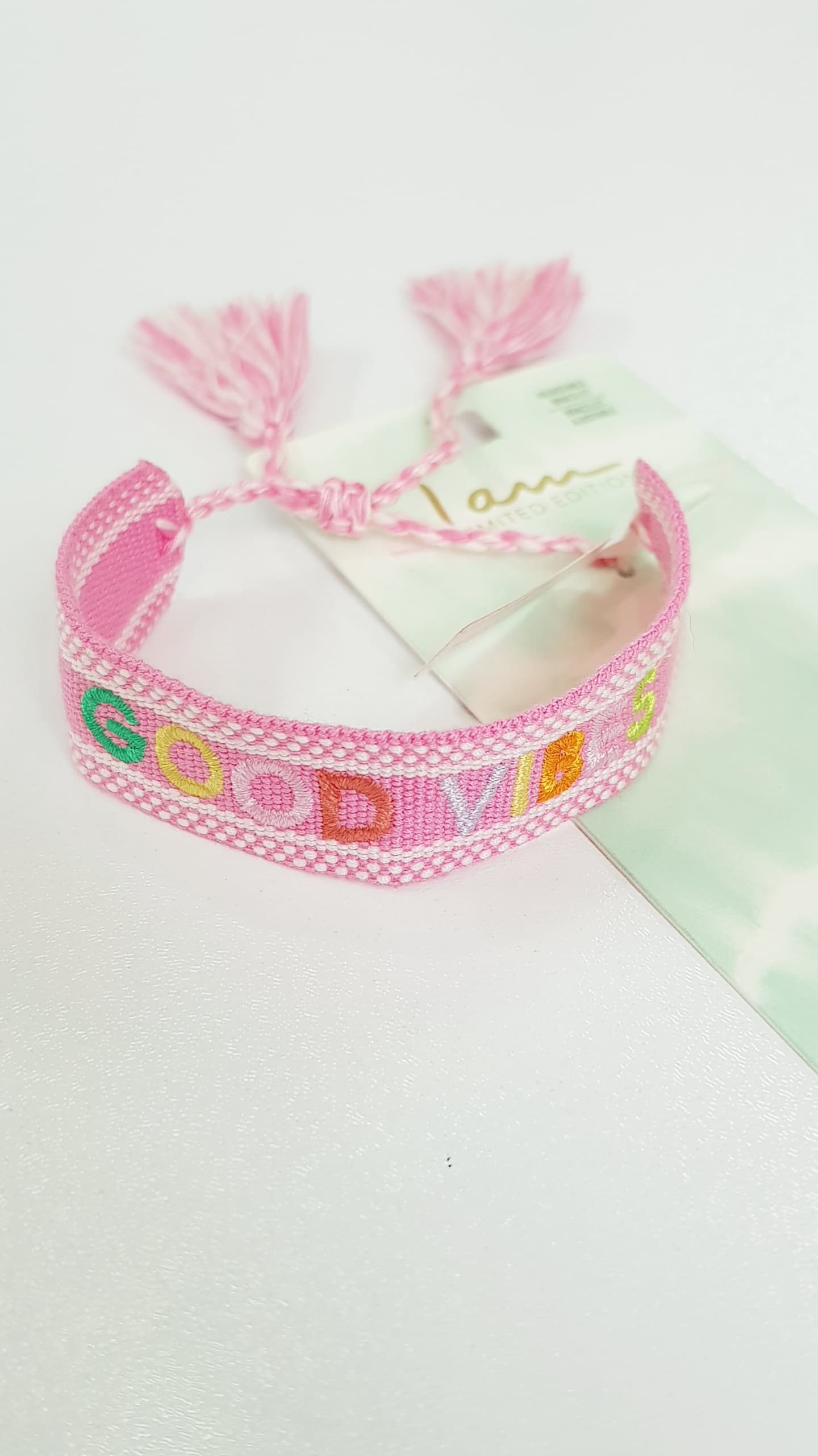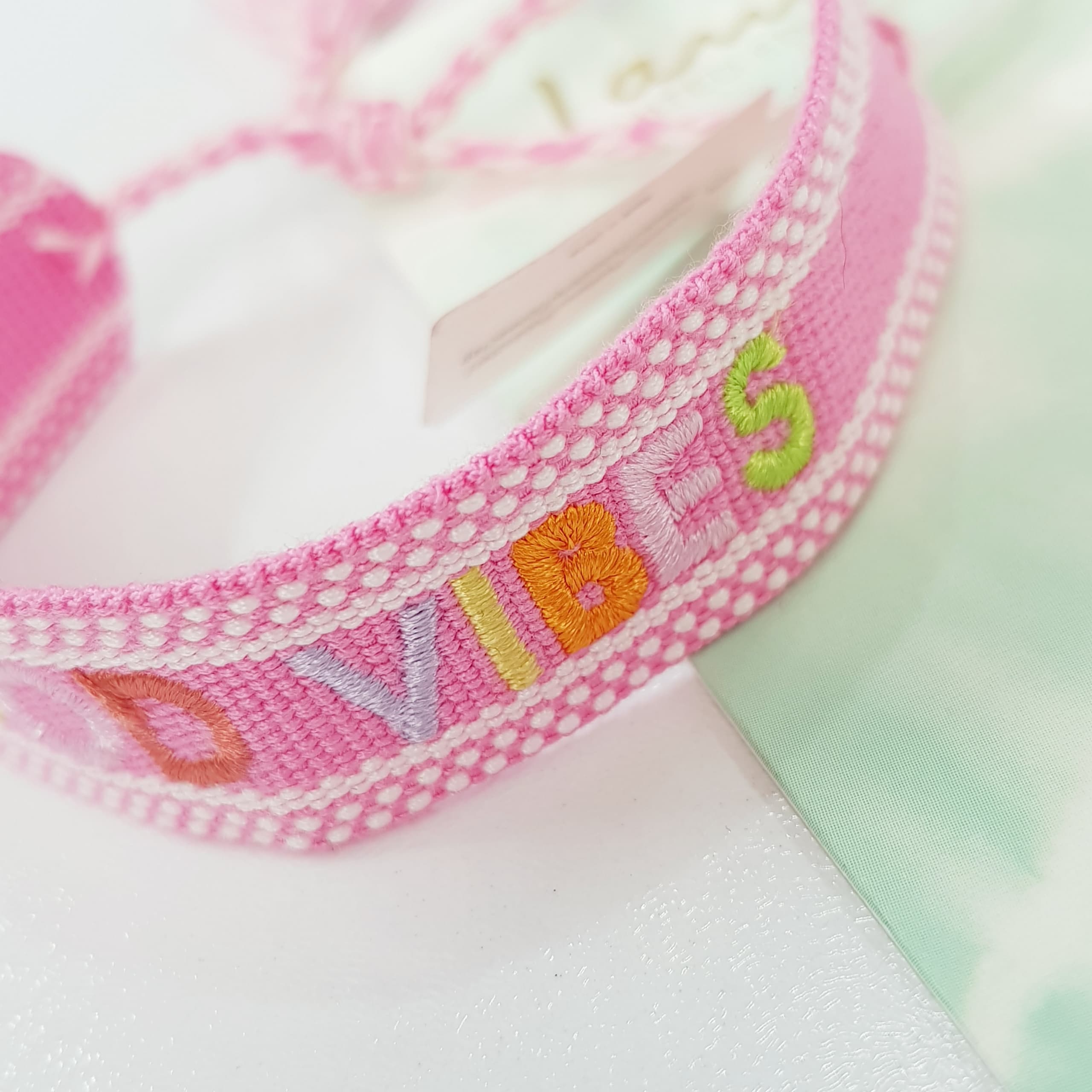 ✅ دستبند بافت پارچه ای Good Vibes ، فری سایز قابل تنظیم ، مناسب استفاده دائم روزانه، بسیار زیبا و فانتزی