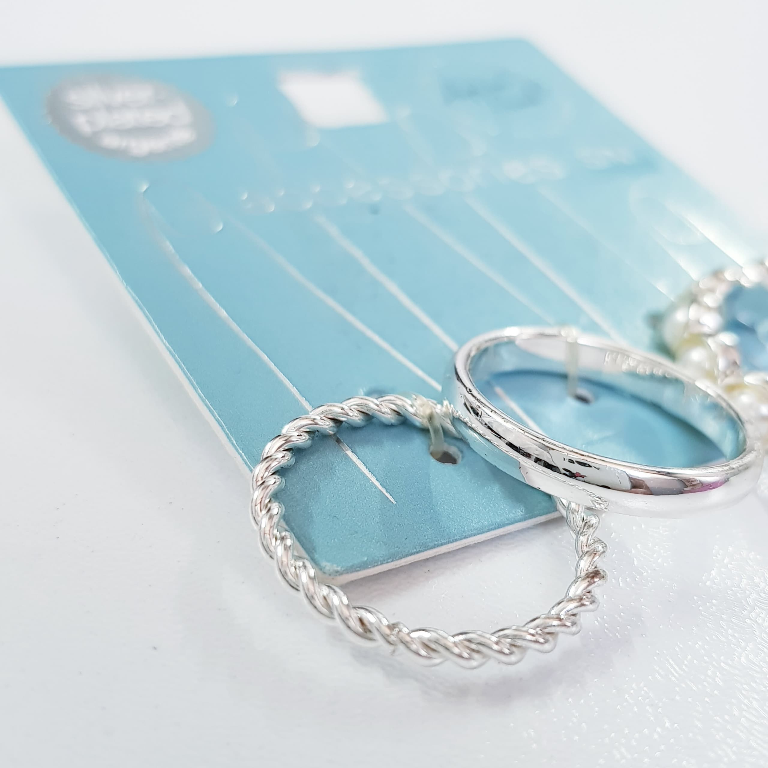 ✅ پک سه عددی حلقه و انگشتر آبکاری نقره ، کار فوق العاده زیبا و ظریف ، سایز S/M