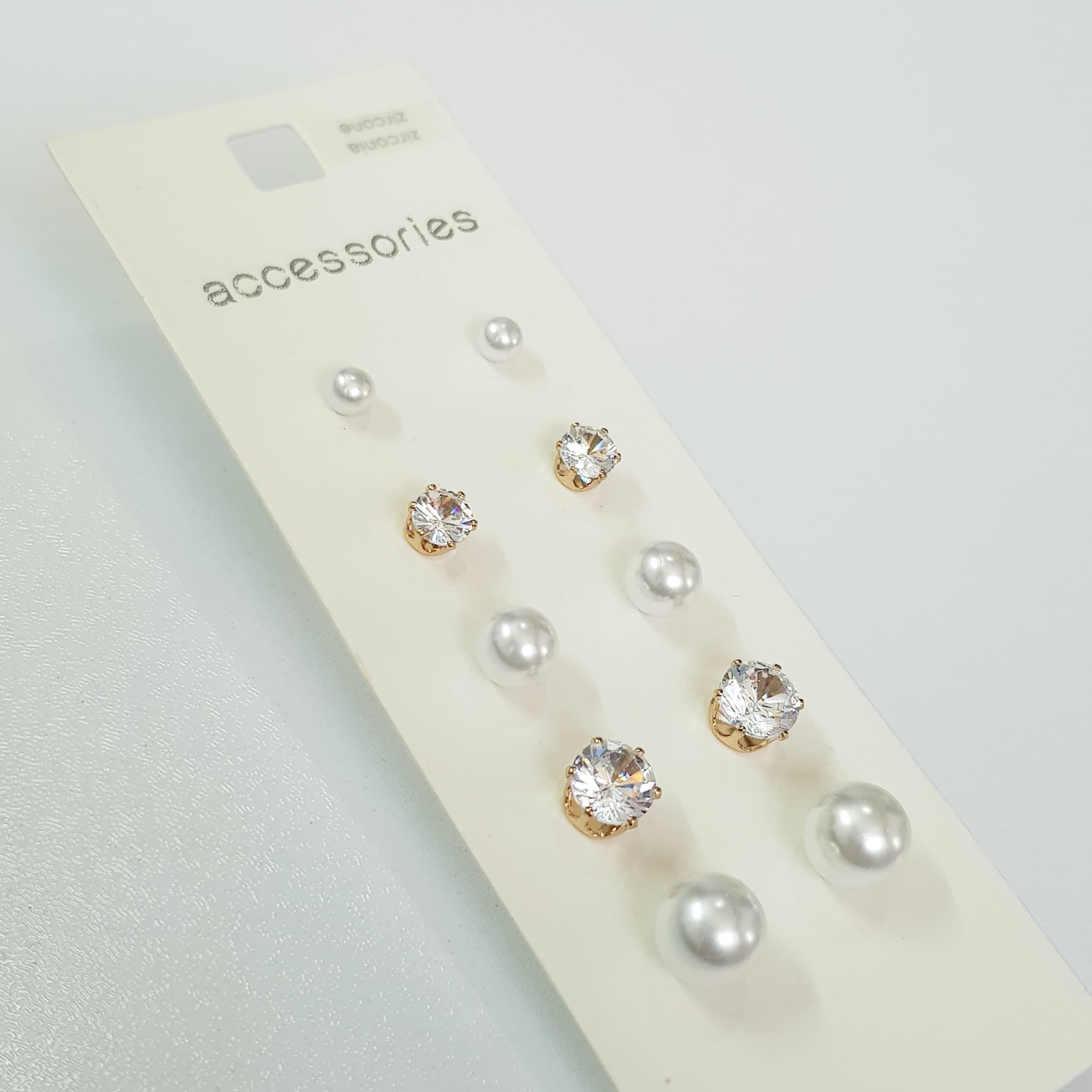 ✅ پک پنج جفتی اقتصادی گوشواره گلگوش نقره ای سنگ زیرکنیا و مروارید ، کیفیت عالی