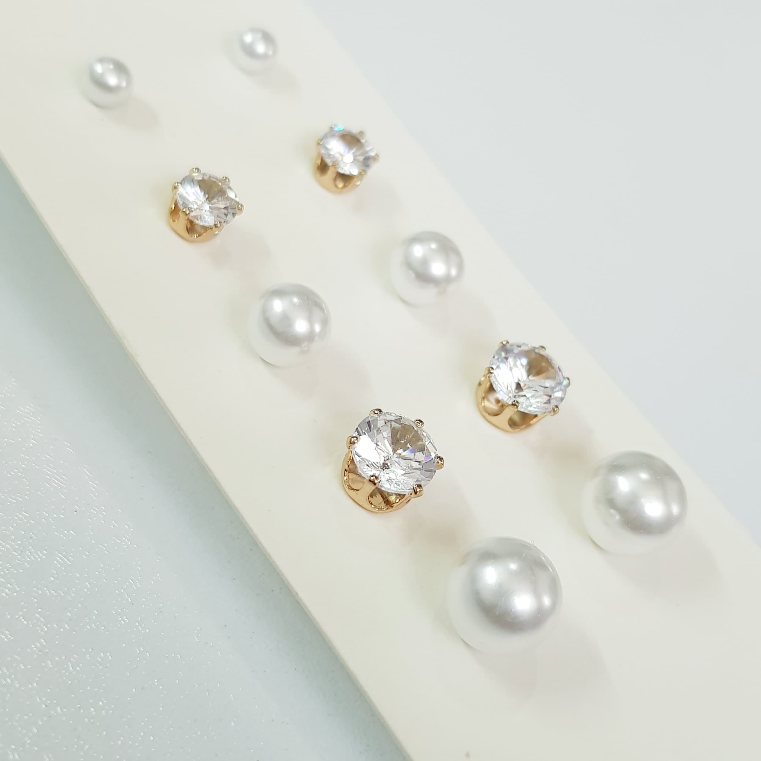 پک پنج جفتی اقتصادی گوشواره گلگوش نقره ای سنگ زیرکنیا و مروارید ،