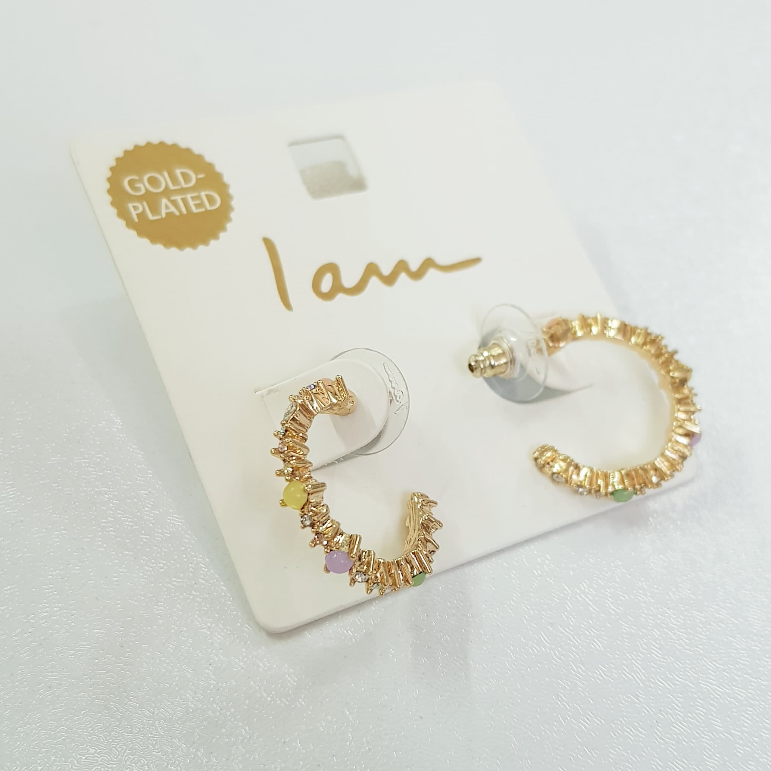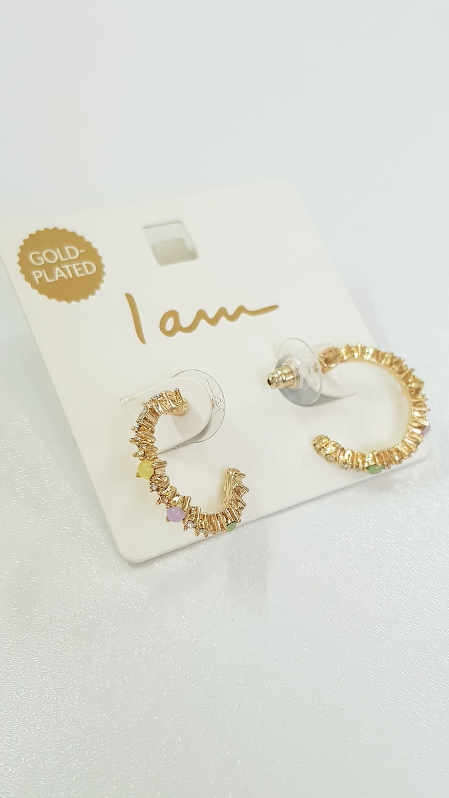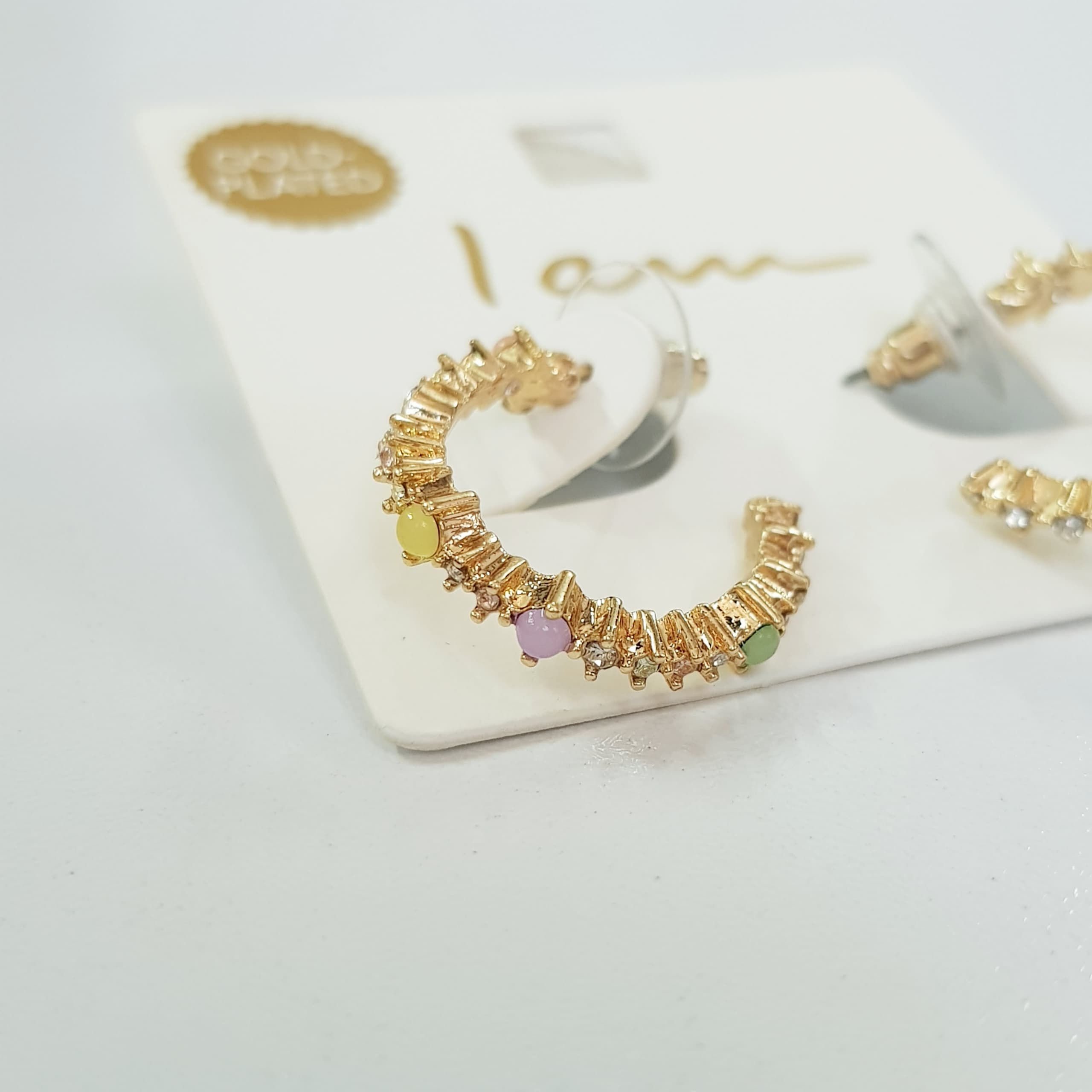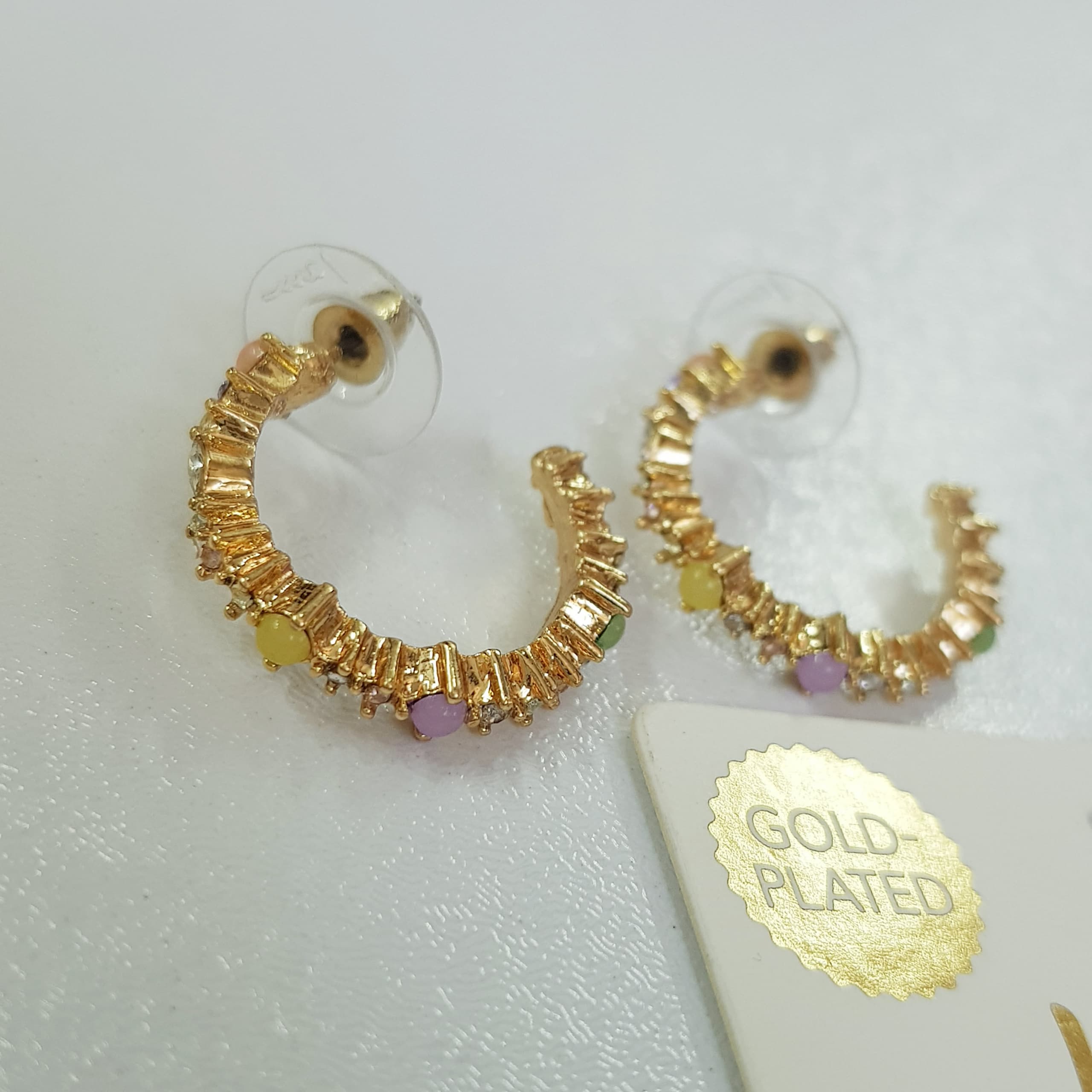 گوشواره حلقه ای آبکاری طلا کار شده با نگین های مولتی کالر