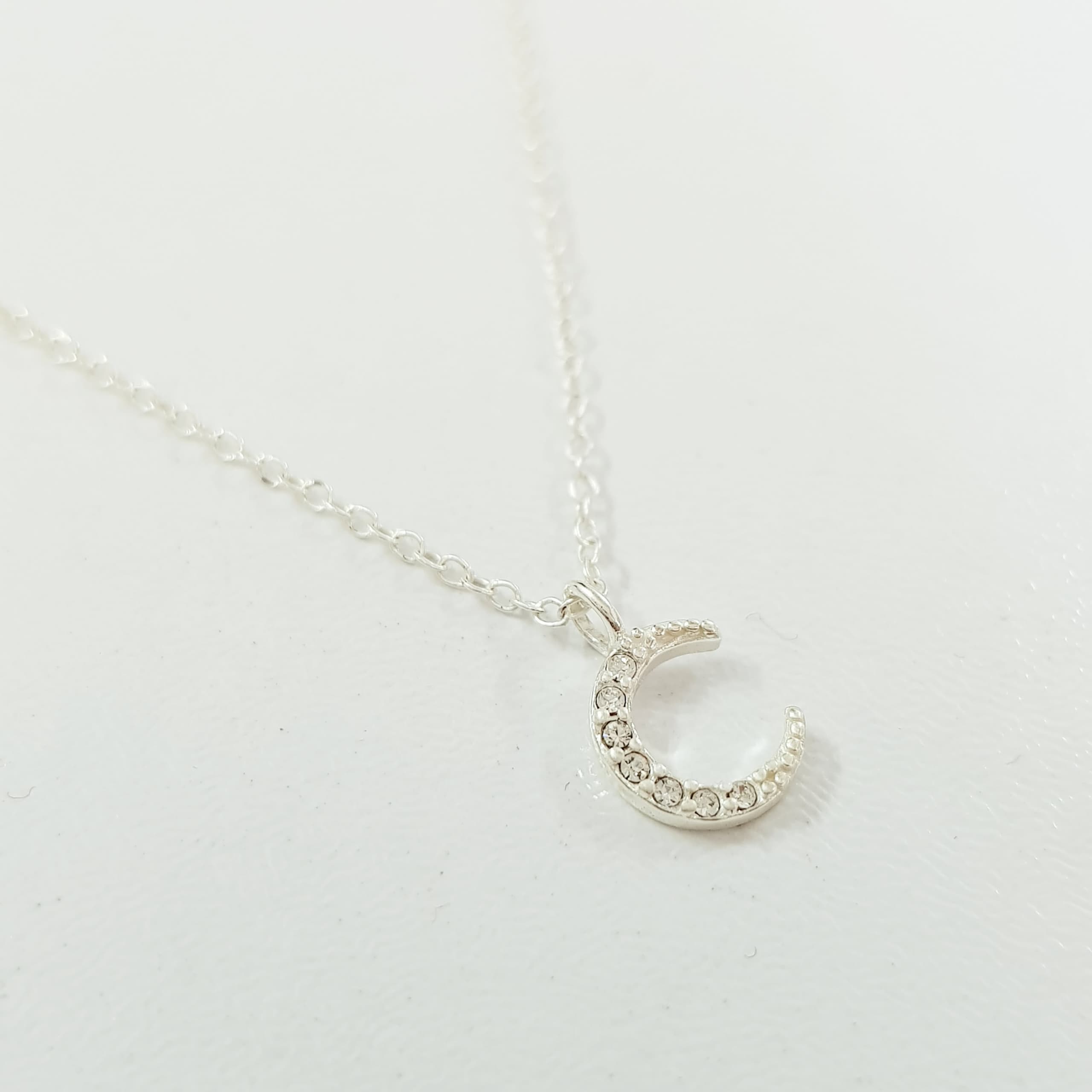 گردنبند نقره عیار ۹۲۵ آویز ماه کار شده با سنگ های زیرکنیا